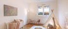 Das Schlafzimmer mit angrenzendem Ankleideraum bietet viel Platz und Struktur, während das zweite Zimmer flexibel als Kinder-, Gäste- oder Arbeitszimmer genutzt werden kann.