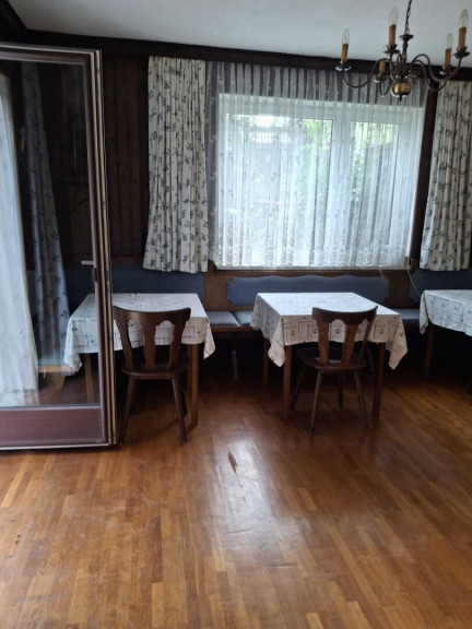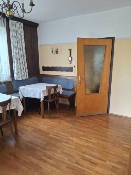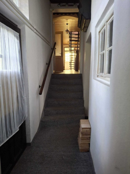 Sie betreten das Haus durch einen später dazu gebauten Windfang, von dem aus Sie das Vorzimmer betreten. Weiter geht es in das Stiegenhaus. Von hier aus sind alle Räume des Erdgeschoßes zu begehen. Rechts findet sich der Frühstücksraum mit Ausgang auf die Terrasse und den Garten. Nebenan finden Sie die Küche mit Essbereich und einer kleinen Speise, auch von hier aus gelangen Sie auf die Terrasse und in den Garten. Das Badezimmer ist ebenfalls von der Küche aus zu begehen, man kann aber sehr leicht einen Eingang vom Vorzimmer aus schaffen. Gegenüber befinden sich zwei Zimmer mit einer Verbindungstüre.