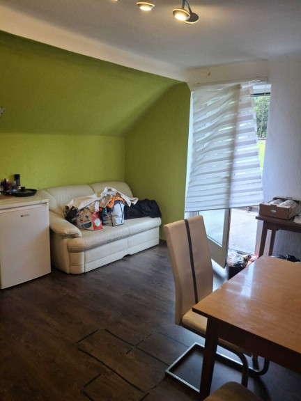 In diesem Stock befindet sich auch eine kleine Einliegerwohnung mit Schlafzimmer, Bad, Toilette, einem Wohnzimmer und einer Terrasse.