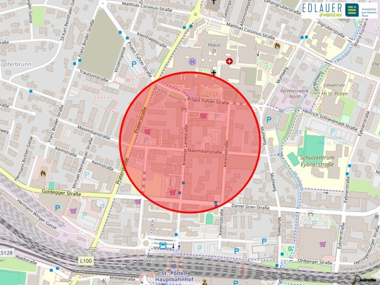 Das Wohnhaus befindet sich direkt im Zentrum von St.Pölten. Besonders erwähnenswert ist die ausgezeichnete Verkehrsanbindung. Sowohl in öffentlicher als auch privater Hinsicht ist die Wohnung sehr gut gelegen. Diese gute Lage spiegelt sich auch auf den Bereich Infrastruktur und Einkaufsmöglichkeiten wider. Keine 4 Minuten Gehzeit entfernt befindet sich der St.Pöltner Hauptbahnhof und auch diverse Einkaufsmöglichkeiten befinden sich nur wenige Meter entfernt.