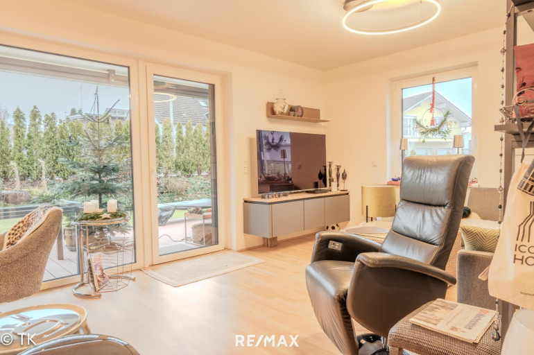 Die Wohnung befindet sich im Erdgeschoss eines Hauses mit insgesamt vier Wohneinheiten. Die moderne Bauweise mit Luftwärmepumpe samt Solarunterstützung, Fußbodenheizung und einer allgemeinen PV-Anlage sorgt für moderate Bewirtschaftungskosten.