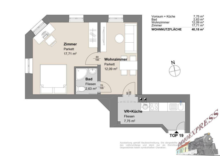 Die Wohnung liegt in der Nähe Quellenstraße, wo sich alle Geschäfte des täglichen Gebrauchs sowie zahlreiche Shoppingmöglichkeiten befinden.