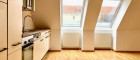 Die Wohnung ist modern ausgestattet und verfügt über einen Küchenblock inkl. Geräten sowie Badezimmermöbel.