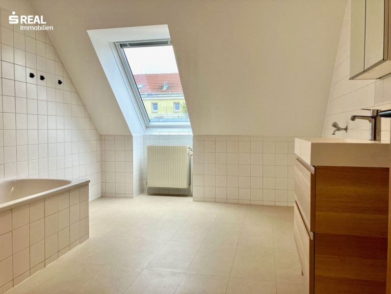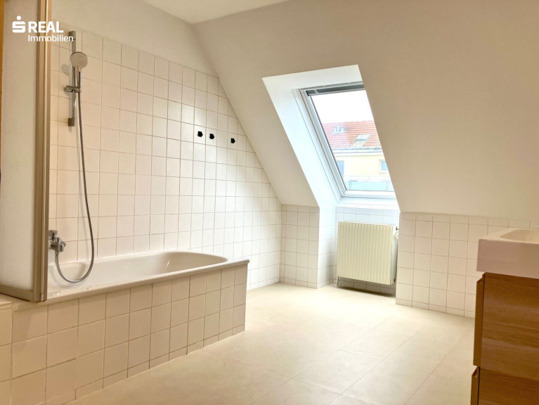 Ein besonders schönes großes Bad mit großem Fenster rundet das Angebot ab.
