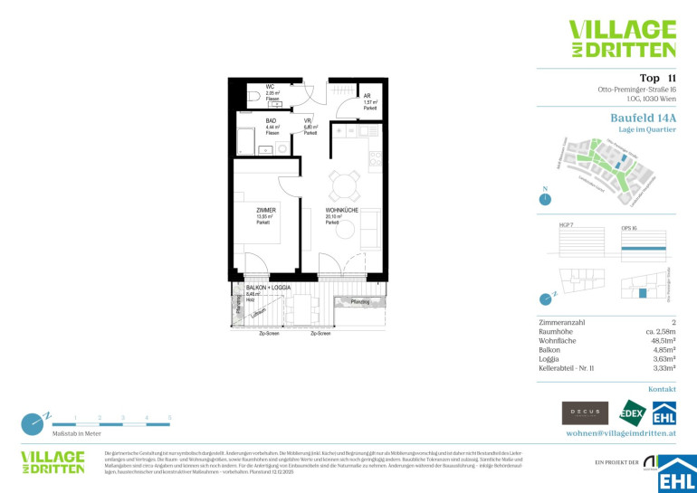 Im dritten Wiener Gemeindebezirk entsteht mit dem VILLAGE IM DRITTEN ein neues Stück Stadt – eines der größten Stadtentwicklungsgebiete Wiens. Auf über elf Hektar entwickelt die ARE Austrian Real Estate gemeinsam mit der Stadt Wien und dem wohnfonds_wien ein lebendiges, nahezu autofreies Quartier mit rund 2.000 Wohnungen, Büro- und Gewerbeflächen, Kinderbetreuung, Bildungseinrichtungen und Nahversorgung. Das grüne Herz bildet der über 2 Hektar große Bert-Brecht-Park –eine Oase für Erholung, Begegnung und Spiel. Alle Dächer, die nicht begehbar sind, werden begrünt. Sharing-Angebote, Einkaufsmöglichkeiten und Gastronomie liegen direkt vor der Haustüre. Nachhaltigkeit, kurze Wege und hohe Lebensqualität sind die Leitlinien dieses neuen Stadtviertels.