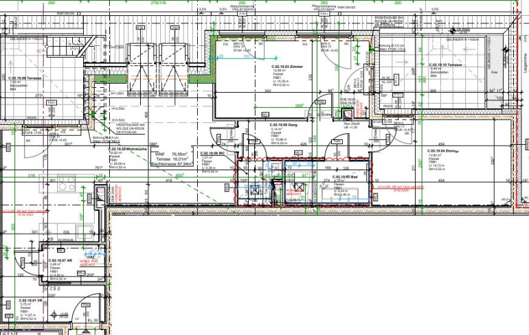 76,95m2 Wohnfläche zzgl. 3 Terrassen mit insgesamt ca. 114,00m2 Terrassenfläche,