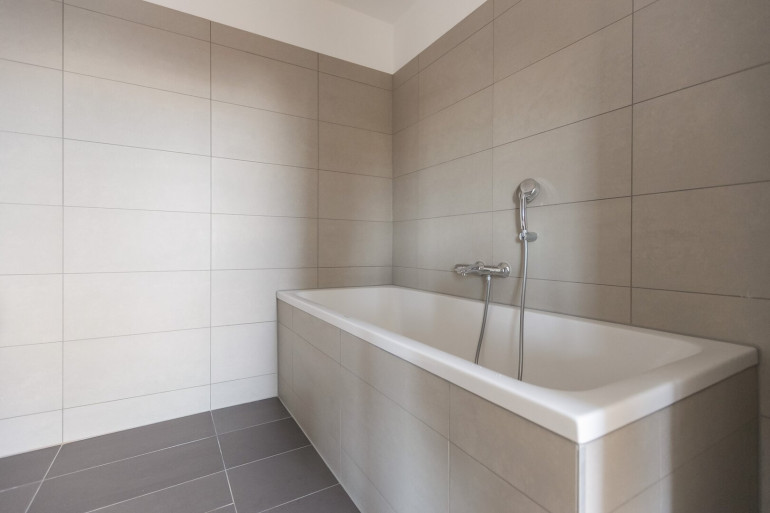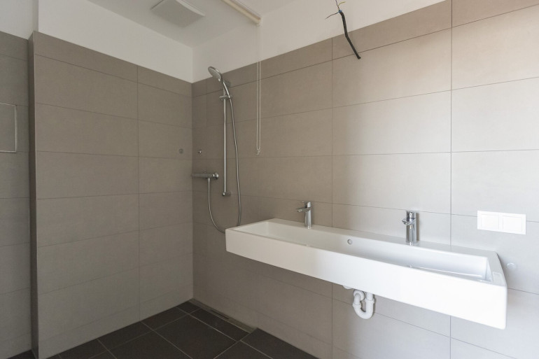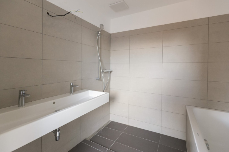 Wohnzimmer mit offener Einbauküche und Zugang zur Terrasse, Schlafzimmer mit angrenzendem Bad (mit Wanne und Dusche) Schrankraum und Zugang zur Terrasse, Kinderzimmer mit angrenzendem Bad (mit Dusche), Vorzimmer,