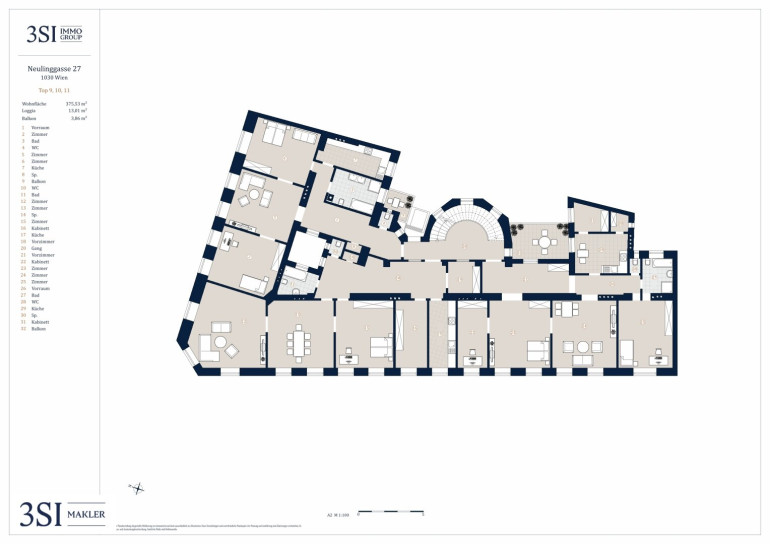 Zum Verkauf steht eine weitläufige Altbauetage durch Wohnungszusammenlegungen mit bis zu 10 Zimmer mit insgesamt rund 375 m² Wohnfläche + ca. 13m² Loggia + ca. 4m² Balkon eines gepflegten Hauses im begehrten 3. Bezirk bietet die ideale Grundlage, um eigene Wohnideen zur Wirklichkeit werden zu lassen. Auf rund 130 m² und 13m² Loggia eröffnet sich ein Raumangebot, das Ihnen maximale Freiheit in der Gestaltung lässt – ganz nach Ihren persönlichen Vorstellungen und Bedürfnissen.