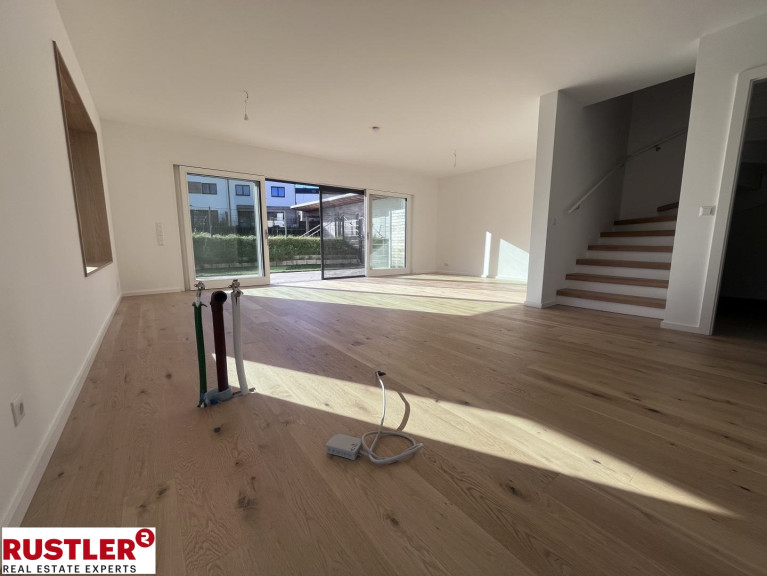 Die Liebe zum Detail zieht sich durch alle Bereiche und basiert auf ausgewählten Materialien und hochwertigen Markenprodukten. Elegante Parkettböden in allen Wohn- und Schlafräumen, Innentüren weiß matt mit Holzzarge bzw. Glastüren, großzügige Terrasse im Erdgeschoß mit Kaltwasseranschluss und Außenbeleuchtung, Terrasse im Dachgeschoß mit beeindruckender Aussicht, großformatige Fliesen (60 x 60 cm) in den Sanitärbereichen, Badewannen mit Markenarmaturen, bodenbündige Duschen, sämtliche Häuser werden vollständig mit Raffstores ausgestattet und noch vieles mehr...