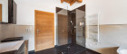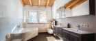 - Traumhafter Bergblick & Wellness-Badezimmer – Schlafzimmer mit Panoramaausblick und modernes Bad mit Badewanne, Dusche und Doppelwaschtisch.