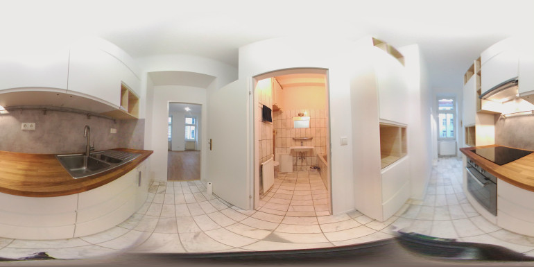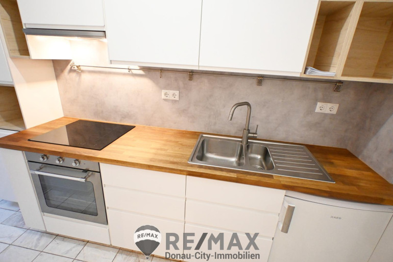 Im Vorraum befindet sich die sehr gepflegte und teilweise neuwertige (Herd/Ofen) Küche (ca. 7,86 m²) in der sich auch der Waschmaschinenanschluss und die Gastherme befinden. Über die Küche ist das Wohnzimmer zu erreichen (ca. 18m², Richtung Südost zur Vogelsanggasse), sowie ein weiterer kleiner Wohnraum/Kabinett (ca. 5,23m²) und das Badezimmer/WC (ca. 3,88 m²). Die Fenster des Kabinetts sowie der Küche sind in den Innenhof ausgerichtet.