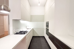 Die Wohnung bietet einen durchgehend verlegten Parkettboden in den Wohn- und Schlafräumen, sämtliche Sanitärräume sind verfliest. Für typisches Altbauflair sorgen klassische Kastenfenster und Flügeltüren. Ein Highlight ist sicherlich die moderne Komplettküche mit verlängertem Stauraum in den Essbereich, welche mit Mikrowelle, Backofen, Geschirrspüler und Gasherd, Kühl- und Gefrierkombi ausgestattet ist. Geheizt wird mittels Gasetagenheizung. Die Raumhöhe beträgt 3,15 m.