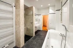 Fliesen, Parkett, Gas, Etagenheizung, Wohnküche / offene Küche, Personenaufzug, Bad mit Fenster, Badewanne, Dusche