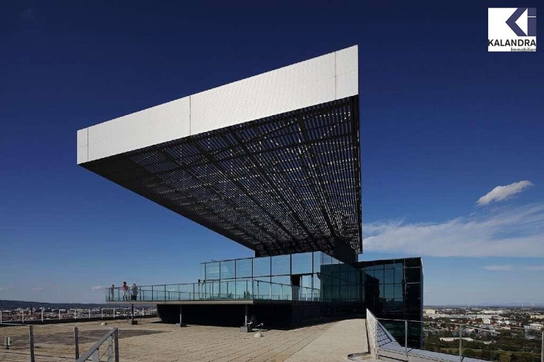 Eine weitere Besonderheit sind die in vielen Stockwerken vorhandenen Terrassen und Balkone, von denen ein atemberaubender Fernblick genossen werden kann.