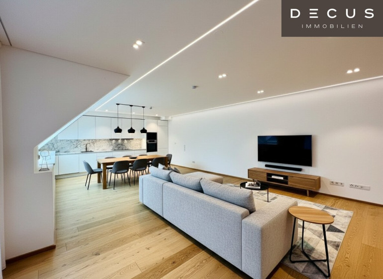 - Herzstück ist der fast 50 m2 große Wohnsalon mit offener Wohnküche, Zugang zur Terrasse und großzügiger Fensterfront!