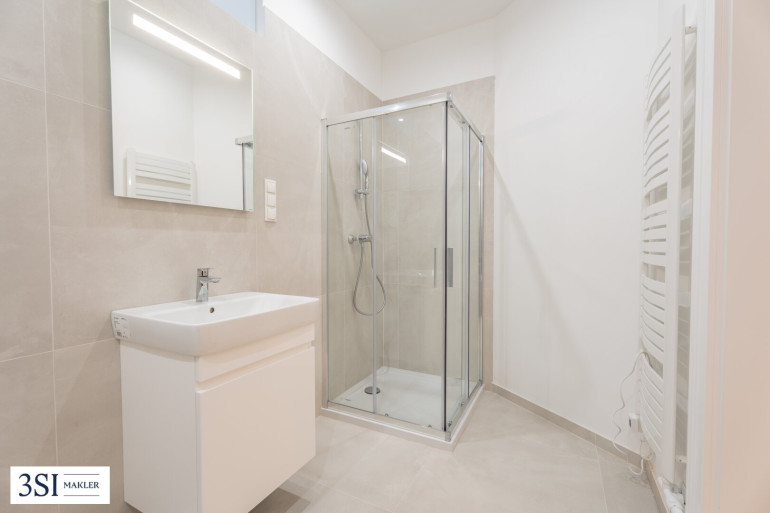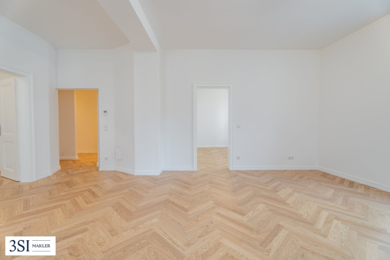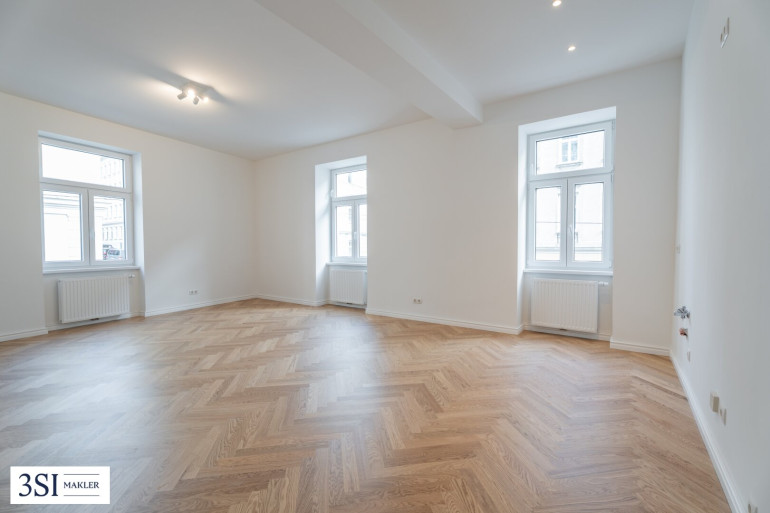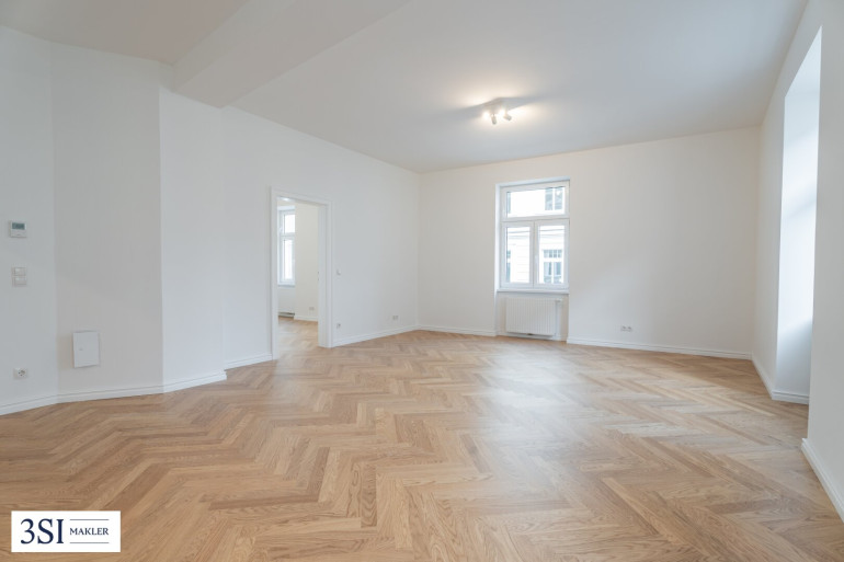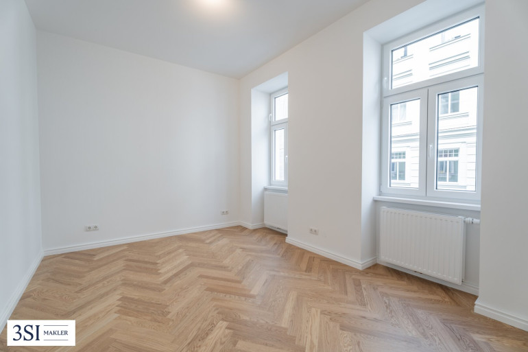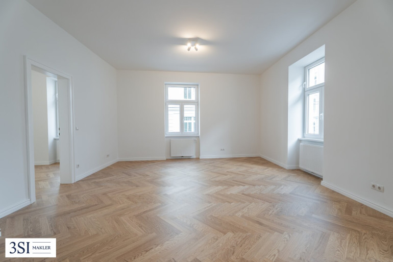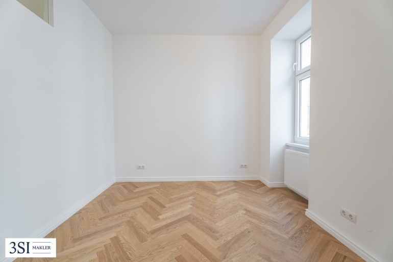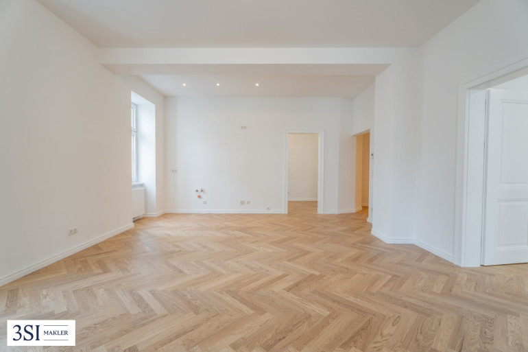 Im Zuge der Sanierung wurde besonderer Wert auf Qualität, Komfort und zeitloses Design gelegt. Die Wohnung ist mit Fußbodenheizung, edlem Eichen-Fischgrätparkett in den Wohnräumen sowie einer hochwertigen, modernen Badausstattung versehen. Die offene Wohnküche schafft gemeinsam mit den großen Fensterflächen ein helles und einladendes Wohnambiente.