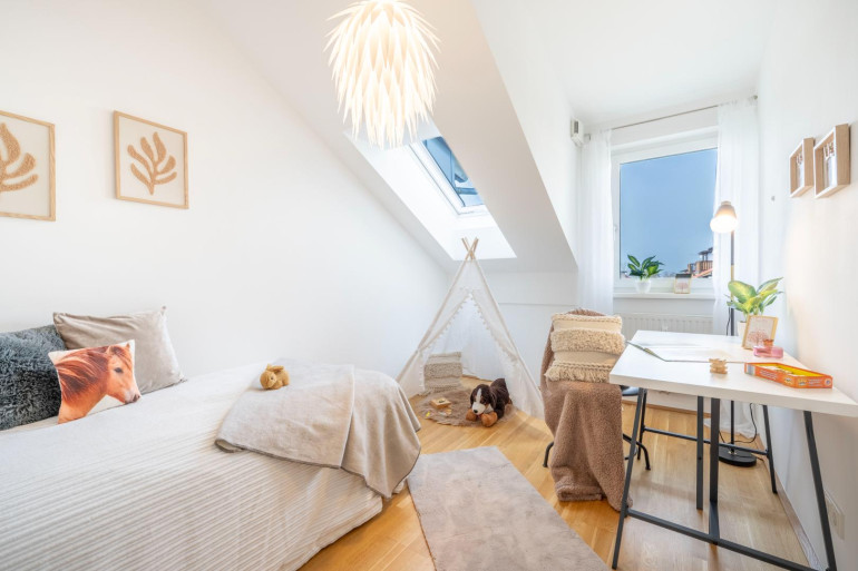 Zwei ruhig gelegene Schlafzimmer bieten vielseitige Nutzungsmöglichkeiten – ob als privater Rückzugsort, Kinderzimmer oder Homeoffice. Das Badezimmer mit Badewanne lädt dazu ein, den Alltag hinter sich zu lassen und Momente der Entspannung zu genießen.