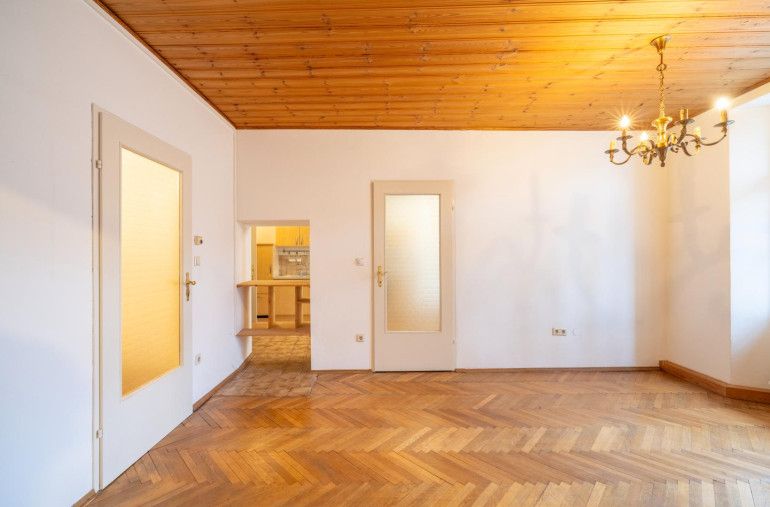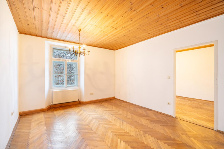 Die Wohnung wurde mit Parkettböden versehen, die für ein angenehmes Wohngefühl sorgen und gut mit der historischen Architektur harmonieren.