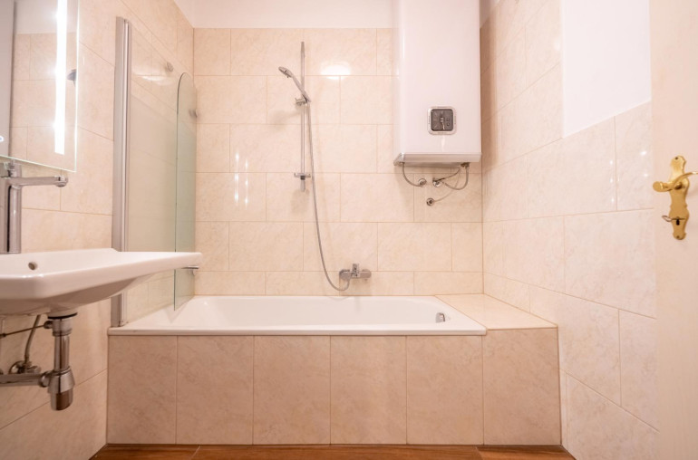 • Neues Badezimmer, modern und geschmackvoll ausgestattet, mit Dusche, WC und praktischen Ablagemöglichkeiten.
