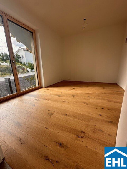Großzügige, bodentiefe Fensterflächen von Josko durchfluten die Wohnräume mit Tageslicht und eröffnen einen beeindruckenden Fernblick. Die lichte Raumhöhe von ca. 2,60 m unterstreicht das offene, elegante Raumgefühl. Elektrischer Sonnenschutz sorgt dabei jederzeit für optimalen Wohnkomfort.