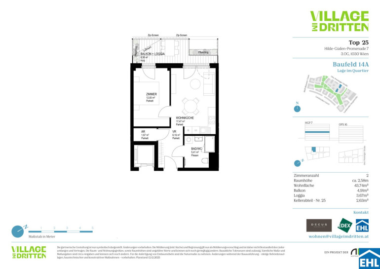 Im dritten Wiener Gemeindebezirk entsteht mit dem VILLAGE IM DRITTEN ein neues Stück Stadt – eines der größten Stadtentwicklungsgebiete Wiens. Auf über elf Hektar entwickelt die ARE Austrian Real Estate gemeinsam mit der Stadt Wien und dem wohnfonds_wien ein lebendiges, nahezu autofreies Quartier mit rund 2.000 Wohnungen, Büro- und Gewerbeflächen, Kinderbetreuung, Bildungseinrichtungen und Nahversorgung. Das grüne Herz bildet der über 2 Hektar große Bert-Brecht-Park –eine Oase für Erholung, Begegnung und Spiel. Alle Dächer, die nicht begehbar sind, werden begrünt. Sharing-Angebote, Einkaufsmöglichkeiten und Gastronomie liegen direkt vor der Haustüre. Nachhaltigkeit, kurze Wege und hohe Lebensqualität sind die Leitlinien dieses neuen Stadtviertels.
