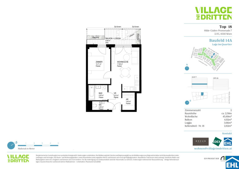 Im dritten Wiener Gemeindebezirk entsteht mit dem VILLAGE IM DRITTEN ein neues Stück Stadt – eines der größten Stadtentwicklungsgebiete Wiens. Auf über elf Hektar entwickelt die ARE Austrian Real Estate gemeinsam mit der Stadt Wien und dem wohnfonds_wien ein lebendiges, nahezu autofreies Quartier mit rund 2.000 Wohnungen, Büro- und Gewerbeflächen, Kinderbetreuung, Bildungseinrichtungen und Nahversorgung. Das grüne Herz bildet der über 2 Hektar große Bert-Brecht-Park –eine Oase für Erholung, Begegnung und Spiel. Alle Dächer, die nicht begehbar sind, werden begrünt. Sharing-Angebote, Einkaufsmöglichkeiten und Gastronomie liegen direkt vor der Haustüre. Nachhaltigkeit, kurze Wege und hohe Lebensqualität sind die Leitlinien dieses neuen Stadtviertels.