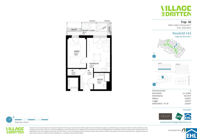 Im dritten Wiener Gemeindebezirk entsteht mit dem VILLAGE IM DRITTEN ein neues Stück Stadt – eines der größten Stadtentwicklungsgebiete Wiens. Auf über elf Hektar entwickelt die ARE Austrian Real Estate gemeinsam mit der Stadt Wien und dem wohnfonds_wien ein lebendiges, nahezu autofreies Quartier mit rund 2.000 Wohnungen, Büro- und Gewerbeflächen, Kinderbetreuung, Bildungseinrichtungen und Nahversorgung. Das grüne Herz bildet der über 2 Hektar große Bert-Brecht-Park –eine Oase für Erholung, Begegnung und Spiel. Alle Dächer, die nicht begehbar sind, werden begrünt. Sharing-Angebote, Einkaufsmöglichkeiten und Gastronomie liegen direkt vor der Haustüre. Nachhaltigkeit, kurze Wege und hohe Lebensqualität sind die Leitlinien dieses neuen Stadtviertels.