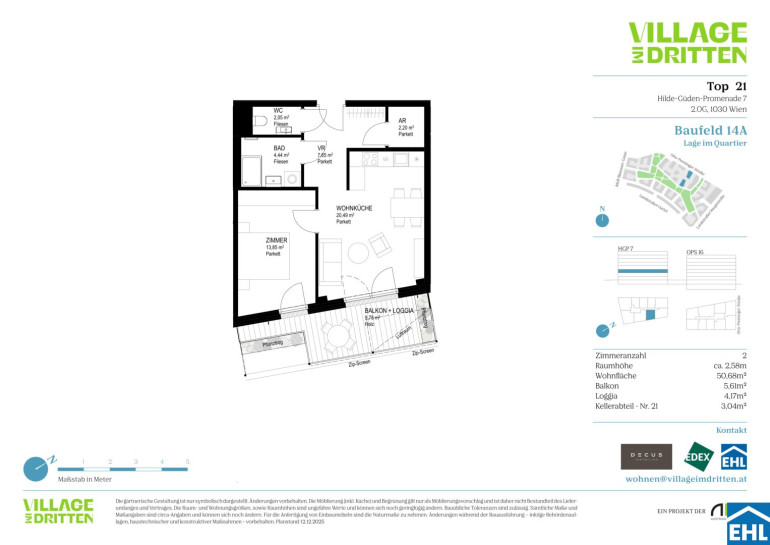 Im dritten Wiener Gemeindebezirk entsteht mit dem VILLAGE IM DRITTEN ein neues Stück Stadt – eines der größten Stadtentwicklungsgebiete Wiens. Auf über elf Hektar entwickelt die ARE Austrian Real Estate gemeinsam mit der Stadt Wien und dem wohnfonds_wien ein lebendiges, nahezu autofreies Quartier mit rund 2.000 Wohnungen, Büro- und Gewerbeflächen, Kinderbetreuung, Bildungseinrichtungen und Nahversorgung. Das grüne Herz bildet der über 2 Hektar große Bert-Brecht-Park –eine Oase für Erholung, Begegnung und Spiel. Alle Dächer, die nicht begehbar sind, werden begrünt. Sharing-Angebote, Einkaufsmöglichkeiten und Gastronomie liegen direkt vor der Haustüre. Nachhaltigkeit, kurze Wege und hohe Lebensqualität sind die Leitlinien dieses neuen Stadtviertels.