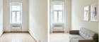 Das Titelbild vermittelt einen Eindruck vom aktuellen Zustand der Wohnung und zeigt zugleich, wie sie nach einer umfassenden Sanierung aussehen könnte.