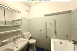 Das modern verflieste Badezimmer ist mit Doppelwaschbecken, Badewanne und einem weiteren WC ausgestattet. Ein separates WC mit Handwaschbecken ergänzt das Raumangebot.
