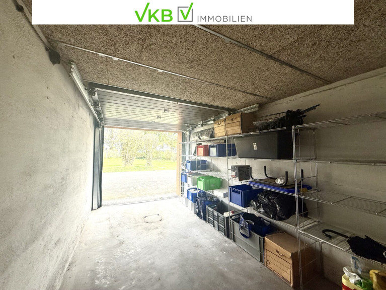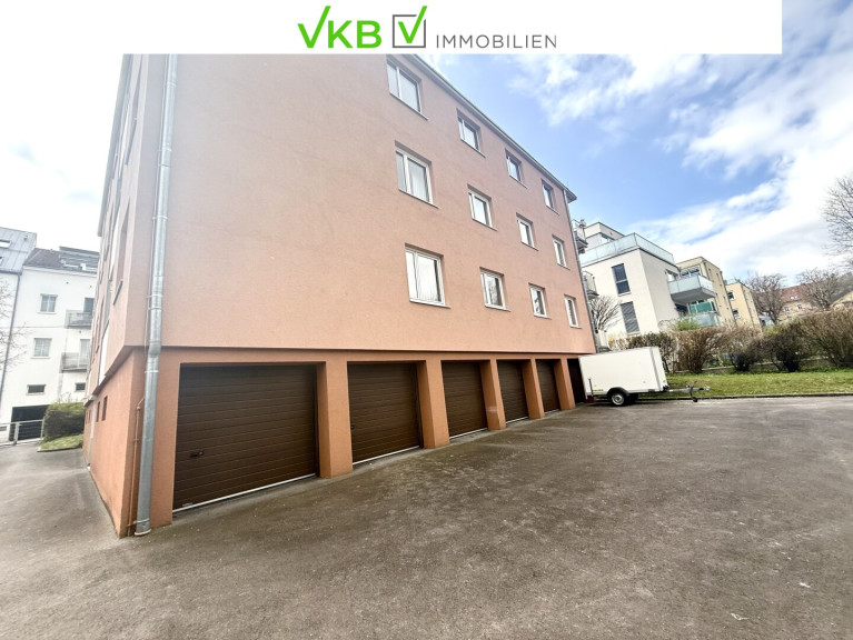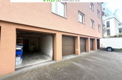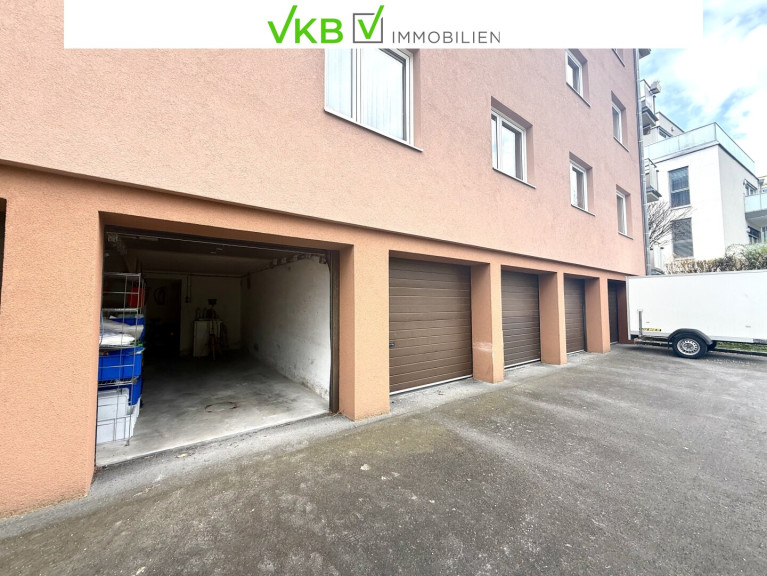 Eine Garage (ca.13,61 m²) mit Zufahrt von der Rückseite des Gebäudes und Zugang ins Stiegenhaus ist vorhanden.