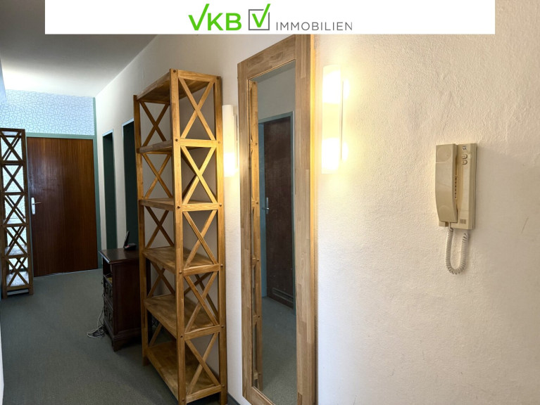 Über das Stiegenhaus gelangt man durch die Eingangstür in eine zentral gelegene, geräumige Diele, von der aus alle Bereiche der Wohnung erreichbar sind. Zwei der Zimmer bieten direkten Zugang zur östlich ausgerichteten Loggia. Ein angrenzendes Kabinett mit Fenster zur Loggia eignet sich ideal als Arbeits- oder Gästezimmer.