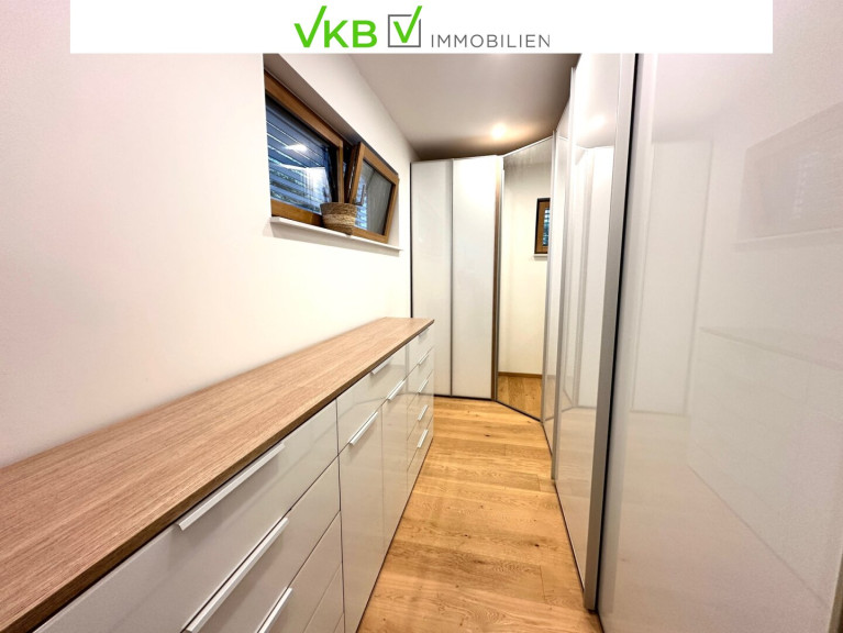 Besonders hervorzuheben ist die Möglichkeit zur separaten Gestaltung einer 1-Zimmer-Einheit mit eigenem Eingang – ideal als Gästebereich, Home-Office oder als Einliegerwohnung. Durch die vorhandene Zugangsmöglichkeit über das Untergeschoss bietet sich eine flexible Gestaltung, ohne die Privatsphäre des Haupthauses zu beeinträchtigen.
