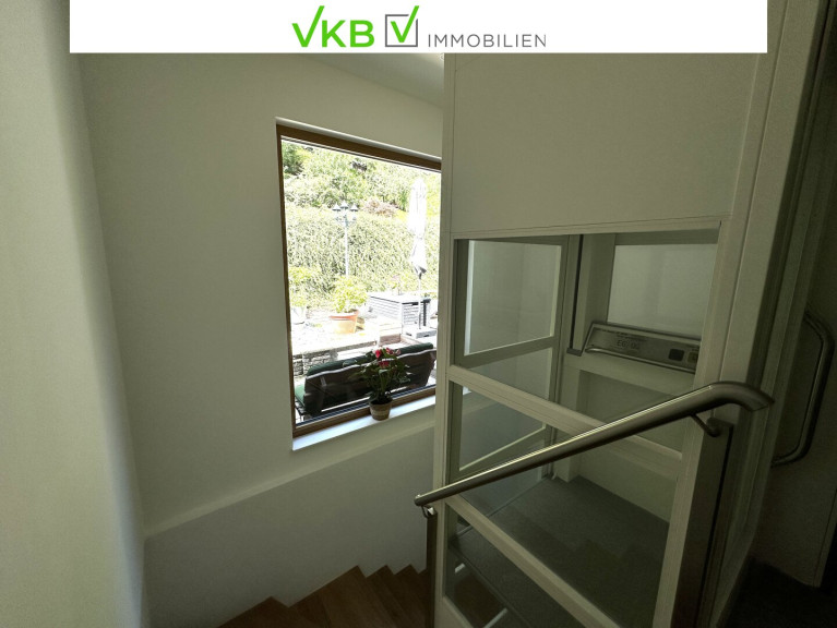 Die barrierefreie Bauweise mit Personenlift, großzügige Fensterfronten und lichtdurchflutete Räume garantieren Wohnqualität für jede Lebenssituation. Der nach Süden und Wald ausgerichtete Garten mit absoluter Blickdichte eröffnet ein Refugium der Ruhe.