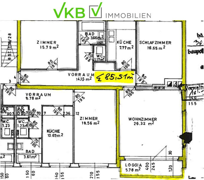 Unverbindliche Unterlage. Die angegebenen Informationen sind nach bestem Wissen erstellt, Druck- bzw. Redaktionsfehler oder Irrtümer vorbehalten. Für Angaben, Auskünfte und Flächen, die uns von Eigentümerseite bzw. Dritten zur Verfügung gestellt wurden, können wir keine Haftung übernehmen. Gem. § 5, Abs. 3 Maklergesetz weisen wir darauf hin, dass die Firma VKB-Immobilien GmbH als Doppelmakler tätig ist.