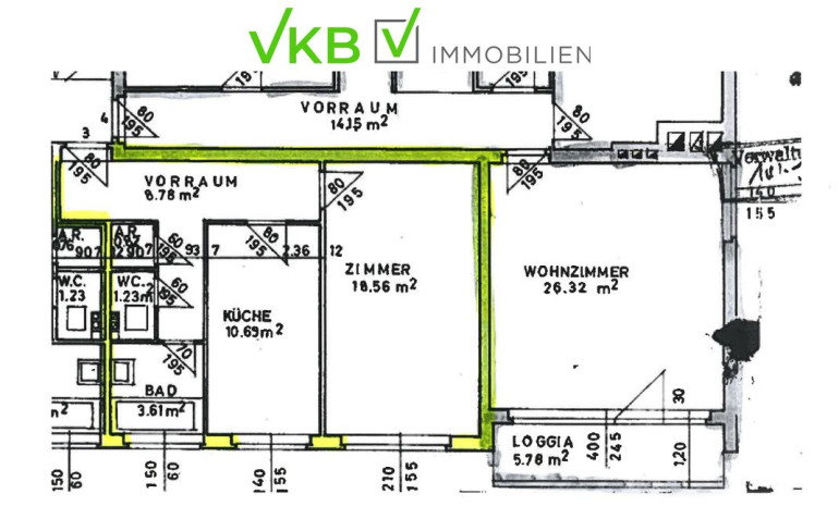 Unverbindliche Unterlage. Die angegebenen Informationen sind nach bestem Wissen erstellt, Druck- bzw. Redaktionsfehler oder Irrtümer vorbehalten. Für Angaben, Auskünfte und Flächen, die uns von Eigentümerseite bzw. Dritten zur Verfügung gestellt wurden, können wir keine Haftung übernehmen. Gem. § 5, Abs. 3 Maklergesetz weisen wir darauf hin, dass die Firma VKB-Immobilien GmbH als Doppelmakler tätig ist.