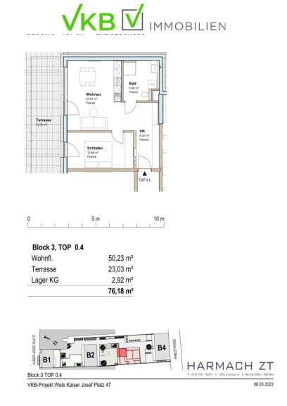 Ca. 76,18 m² WNF inkl. 23,03 m² Terrasse + 2,92 m² Lager KG.