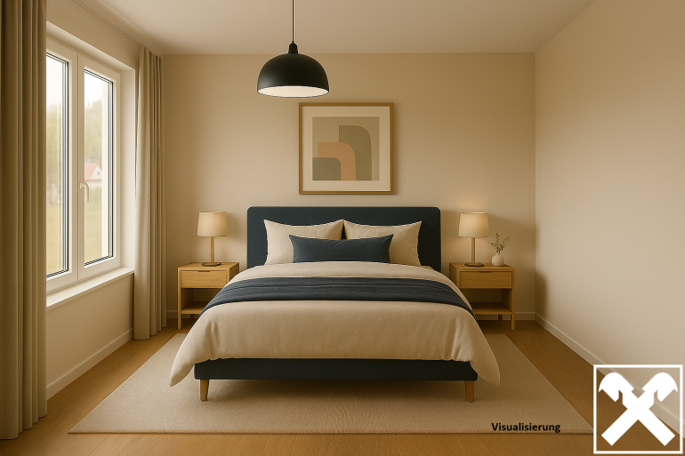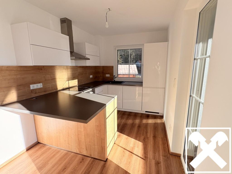 Neuwertige Gartenwohnung mit drei Zimmern bietet Platz für die ganze Familie. Effiziente Raumaufteilung von zwei Schlafzimmern, Wohnzimmer mit Küche, Badezimmer, WC und Abstellraum.