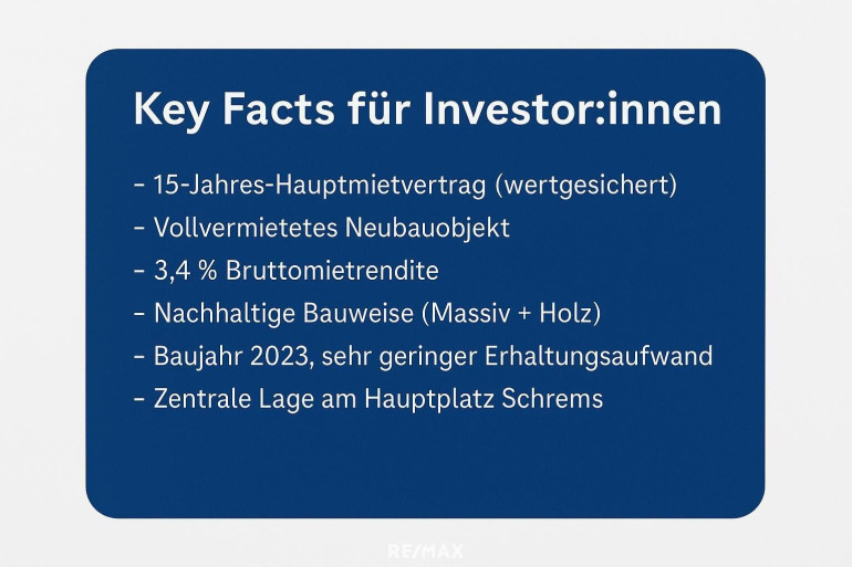Vollvermietetes Neubau-Zinshaus am Hauptplatz Schrems – nachhaltig & architektonisch herausragend