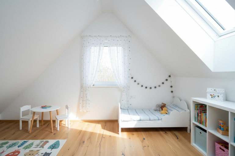 Das Ober- und Dachgeschoss umfasst ca. 146,61 m² und beinhaltet eine Garderobe/Gang, einen offenen Wohn-, Küchen- und Essbereich, zwei Schlafzimmer, ein Kinderzimmer mit angrenzendem Schrankraum, zwei Tageslichtbadezimmer, zwei separate WCs und einen Abstellraum. Zusätzlich bietet Ihnen das Untergeschoss mit einer Fläche von ca. 26,51 m² genügend Abstell- und Lagermöglichkeiten.