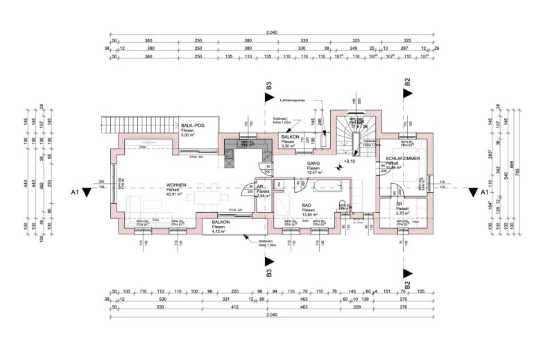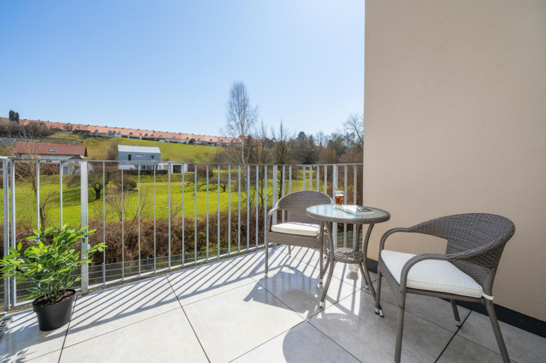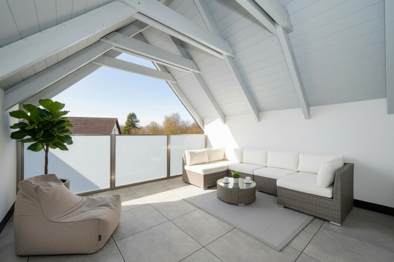 Ein harmonischer Übergang zwischen Innen- und Außenbereich ist hervorragend gelungen. Die drei Balkone im Obergeschoss schaffen einladende Plätze, um frische Luft, Sonne und einen herrlichen Ausblick zu genießen. Zudem bietet die großzügige Loggia im Dachgeschoss die Möglichkeit, auch bei nicht optimalem Wetter das Freie zu nutzen, während Sie gleichzeitig aufgrund der Bauweise und Orientierung maximale Privatsphäre genießen können.