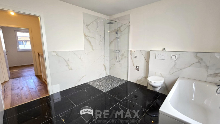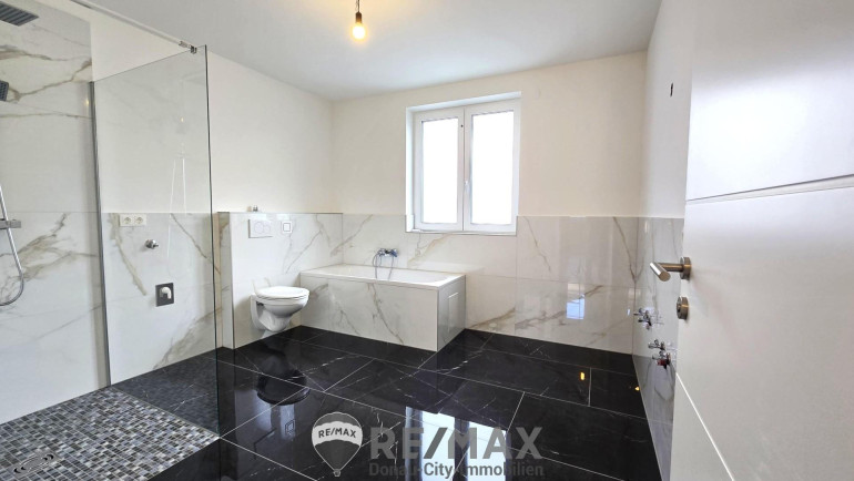 Ein großzügiges Badezimmer ergänzt das Obergeschoss perfekt – hell, modern und funktional..