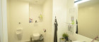 ein neuwertiger Sanitärraum mit WC, Pissoir und Wachbecken,