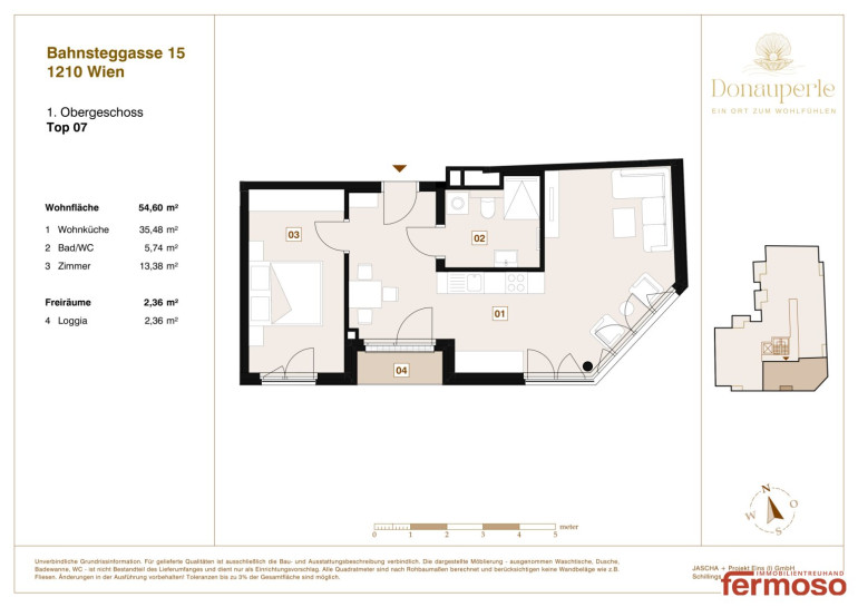 Die Bahnsteggasse liegt im 21. Bezirk Floridsdorf und überzeugt durch ihre ruhige Lage mit gleichzeitig sehr guter Anbindung. Einkaufsmöglichkeiten, Schulen, Ärzte und Restaurants sind in wenigen Minuten erreichbar. Der nahegelegene Donaupark und die Alte Donau bieten zudem vielfältige Freizeit- und Erholungsmöglichkeiten. Öffentliche Verkehrsmittel (U6, Straßenbahnlinien, S-Bahn Floridsdorf) sorgen für eine schnelle Verbindung in die Innenstadt.