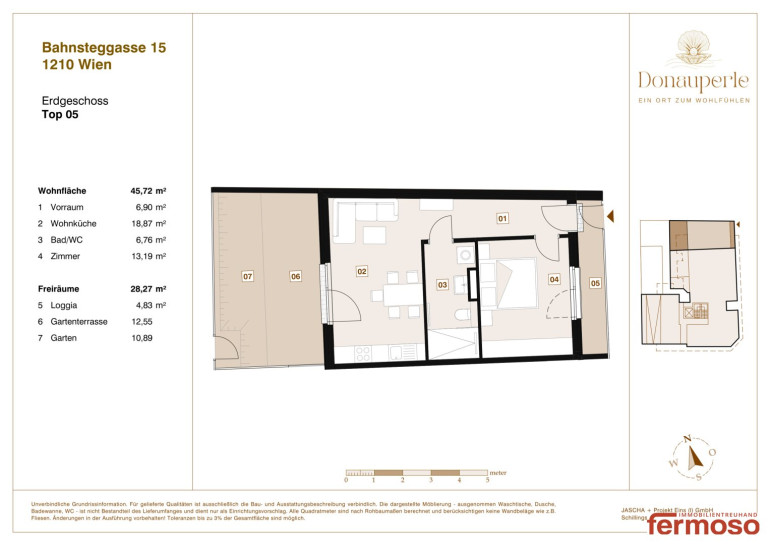 Freiflächen gesamt: ca. 28,27 m² (Loggia, Terrasse & Garten)