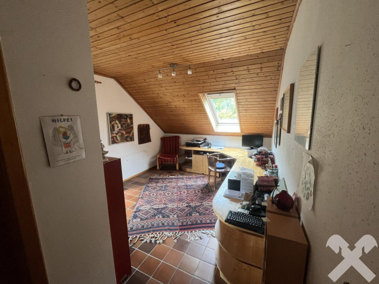 Am Ende einer Sackgasse, nur wenige Schritte vom Ortskern entfernt, liegt dieses Einfamilienhaus in leichter Hanglage mit herrlichem Ausblick. Das eingefriedete Grundstück umfasst über 2.000 m² und bietet zwei Carports sowie zusätzliche Stellplätze.
