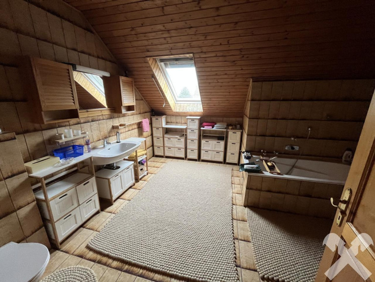 Das Haus verfügt über Erd-, Ober- und Dachgeschoss mit insgesamt mehreren Zimmern, zwei Bädern, Küche mit Essbereich, Wohnzimmer mit Terrasse und gepflegtem Garten. Eine PV-Anlage mit Stromspeicher und E-Ladestation, massive Lärchenholztreppe und ländlich-rustikale Gestaltung runden das Angebot ab.