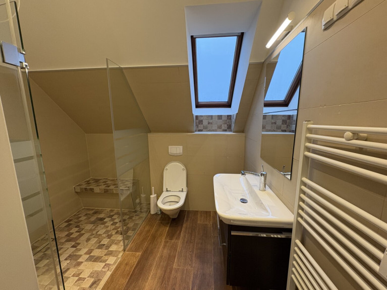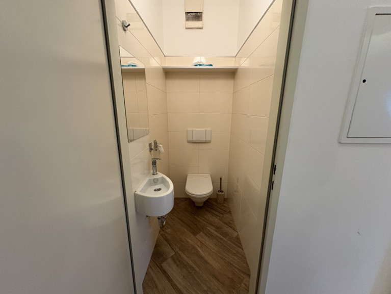 Im oberen Stock befindet sich ein Schlafzimmer und ein Badezimmer welches keine Wünsche offen lässt. Genießen Sie entspannende Momente in einem modernen Bad.