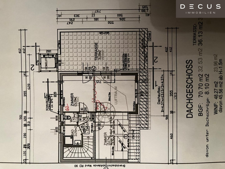 Balkon im Dachgeschoß mit einer Größe von 31,58 m²