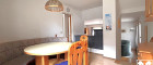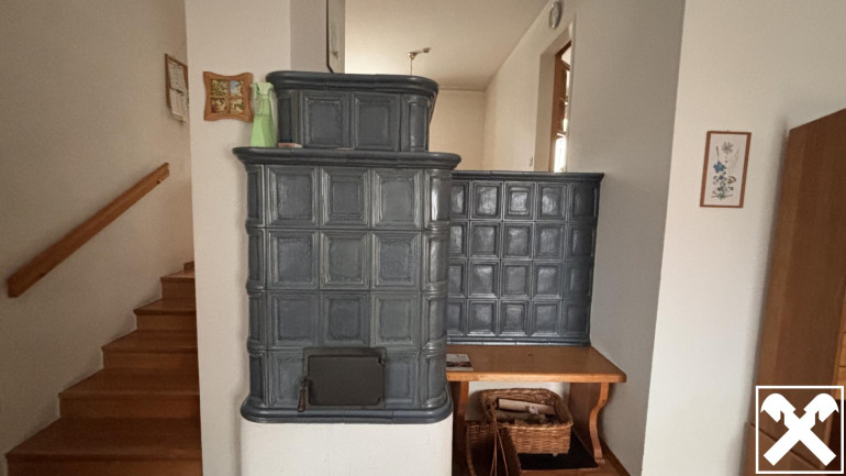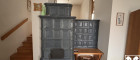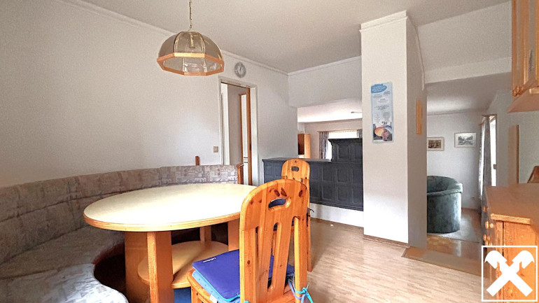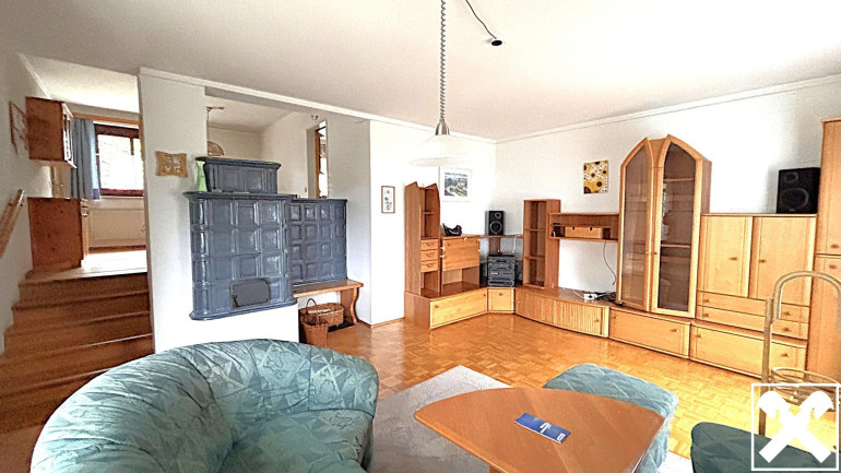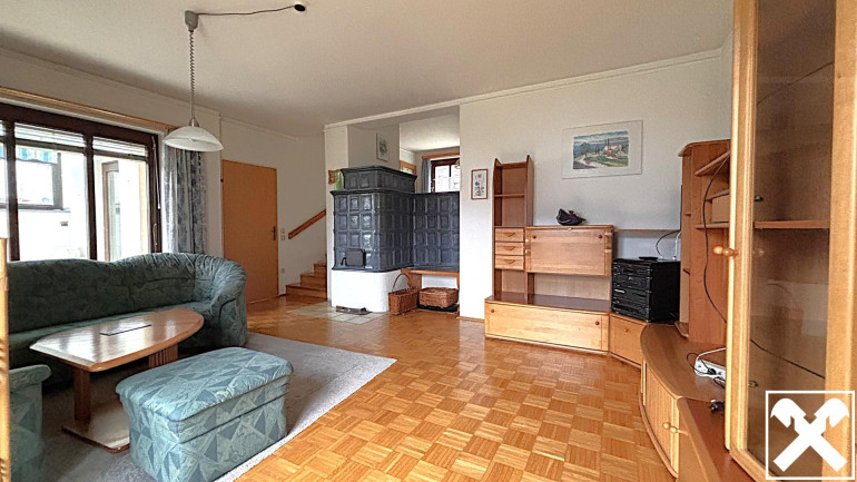 - Esszimmer optisch vom Wohnzimmer durch den Kachelofen als Raumteiler getrennt